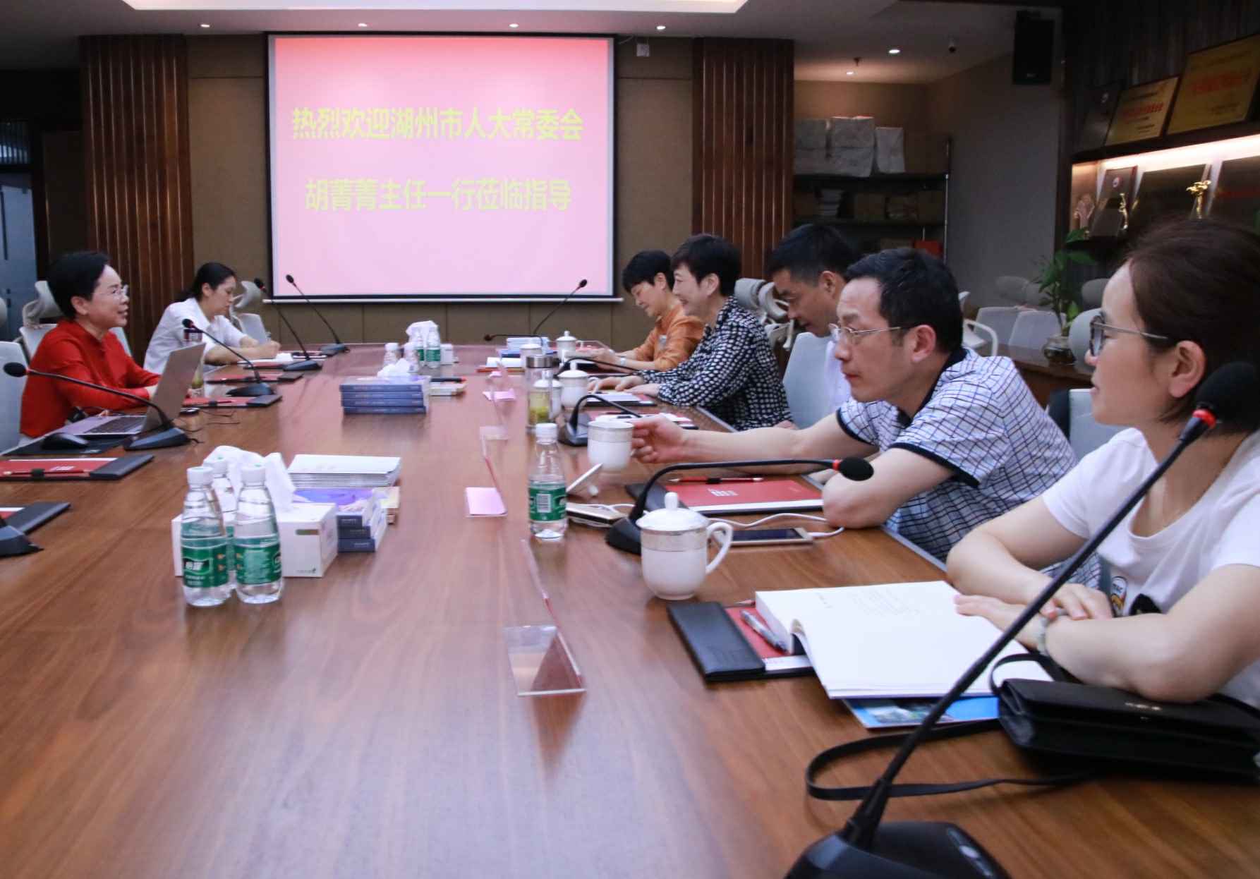 4月26日,湖州市人大常委会胡菁菁主任一行莅临开运体育网页版登录入口-开运(中国)总部考察指导,集团董事长、广东省湖州商会会长官金仙热情接待了胡主任一行。